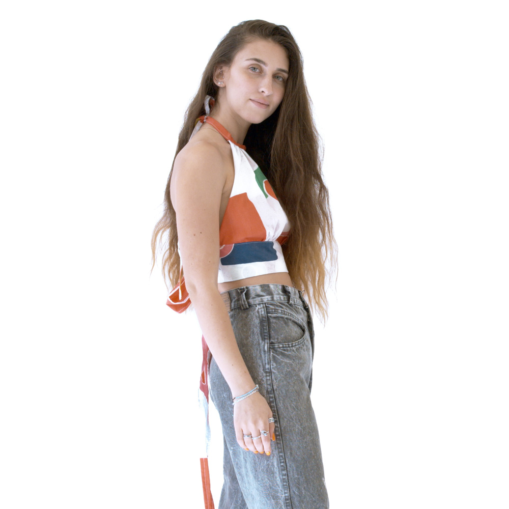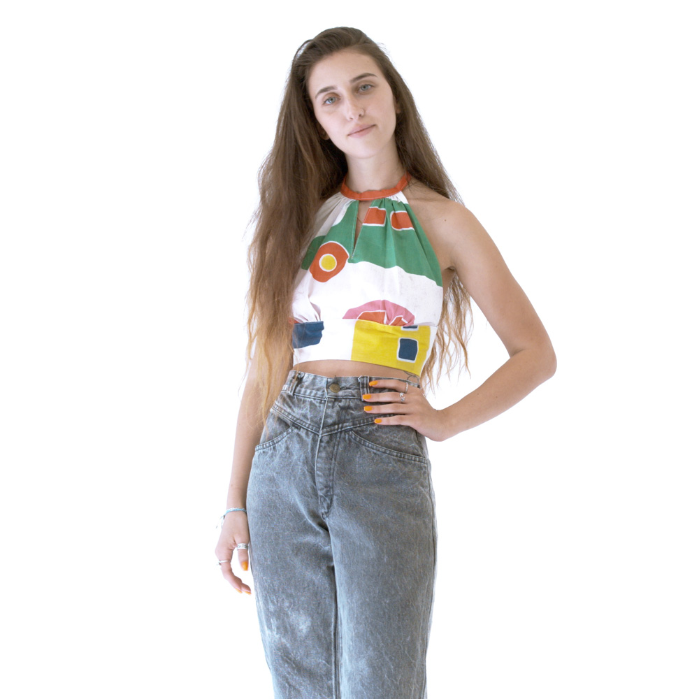 טופ קולר בד 100% כותנה מתחילת שנות ה-90 עם דוגמת מכוניות צבעוניות.