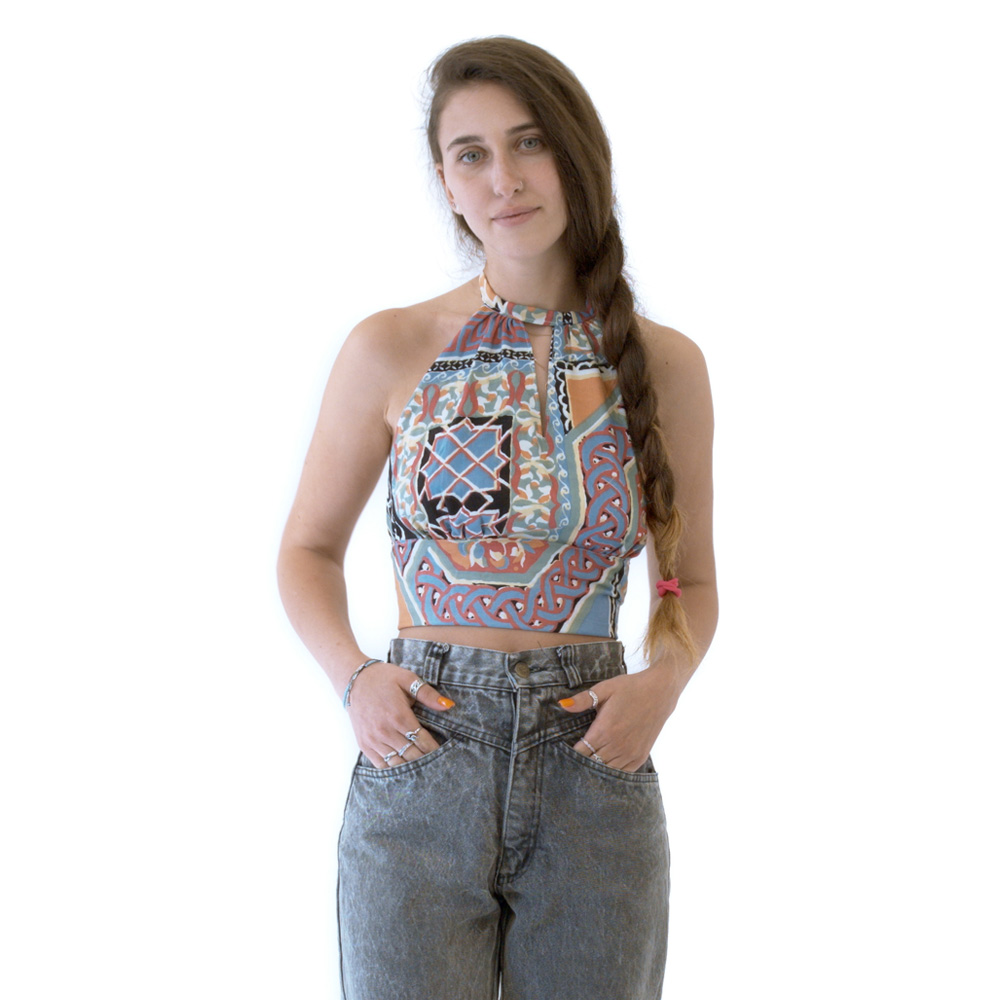 טופ קולר קשירה וינטאג' בד 100% כותנה שנות ה-90.