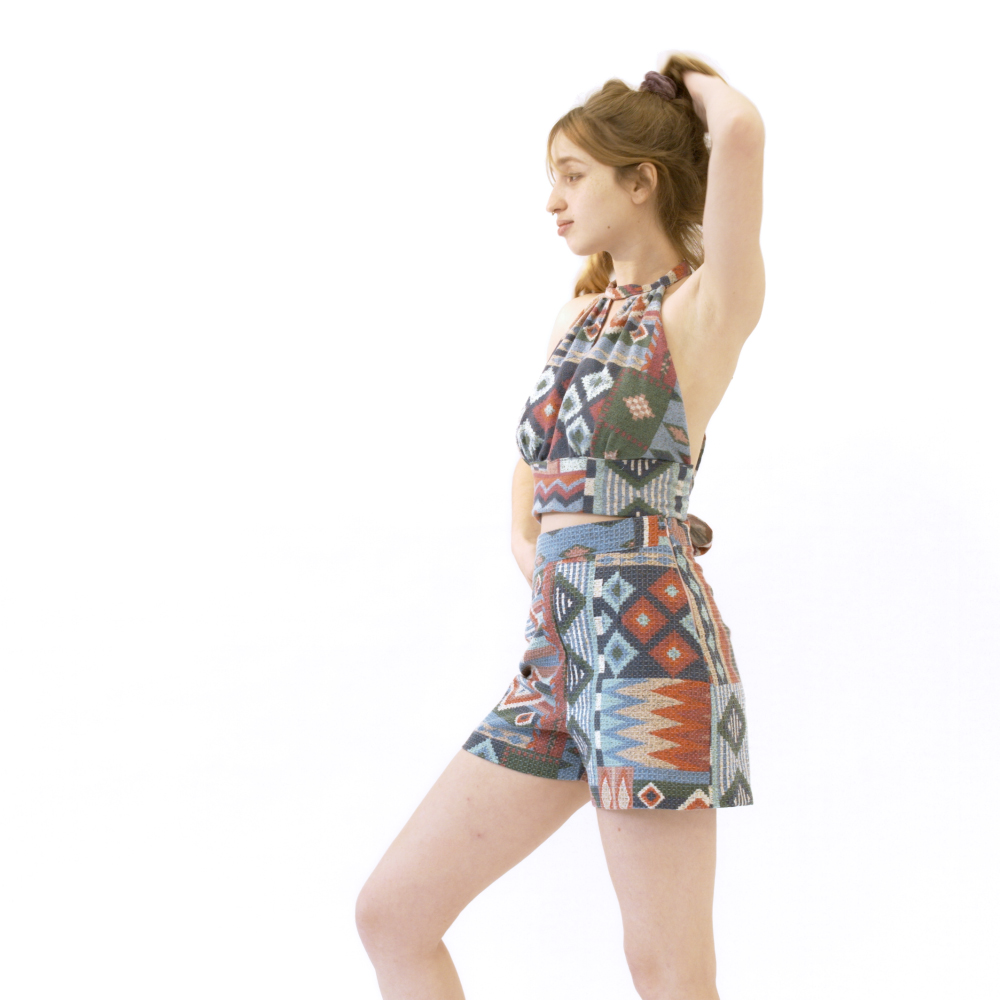 טופ קולר קשירה כותנה צבעוני מקושקש 100% כותנה